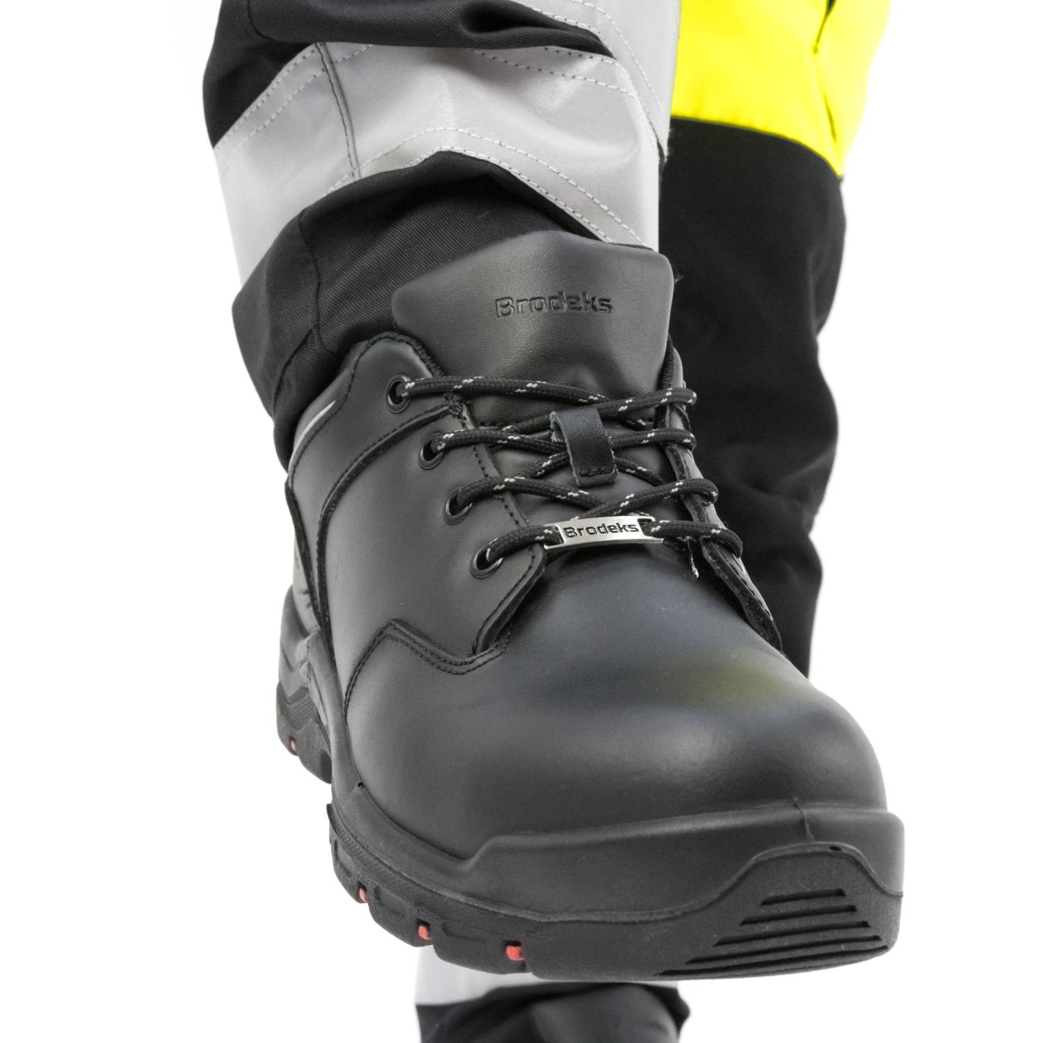 Полуботинки летние мужские Brodeks Alpha BRS101 S3, черный - одна из наиболее универсальных моделей, выполненная в классическом, но современном дизайне для ИТР, и при этом подходящая для тяжелых работ. Верх обуви выполнен из натуральной гладкой кожи, которая имеет отличные дышащие свойства и прекрасно защищает от влаги. Подошва обуви двухслойная: полиуретан и нитрил. Отличительная особенность данных полуботинок - это съемная стелька с памятью формы, что очень важно при длительном использовании обуви, поскольку это разгружает спину работника при длительном нахождении на ногах и дает дополнительный комфорт при ходьбе. Основные области применения: рекомендуется для уличного использования в летний и демисезонный период в строительной, добывающей, нефтегазодобывающей сфере, при обслуживании техники, для любых видов уличных работ.