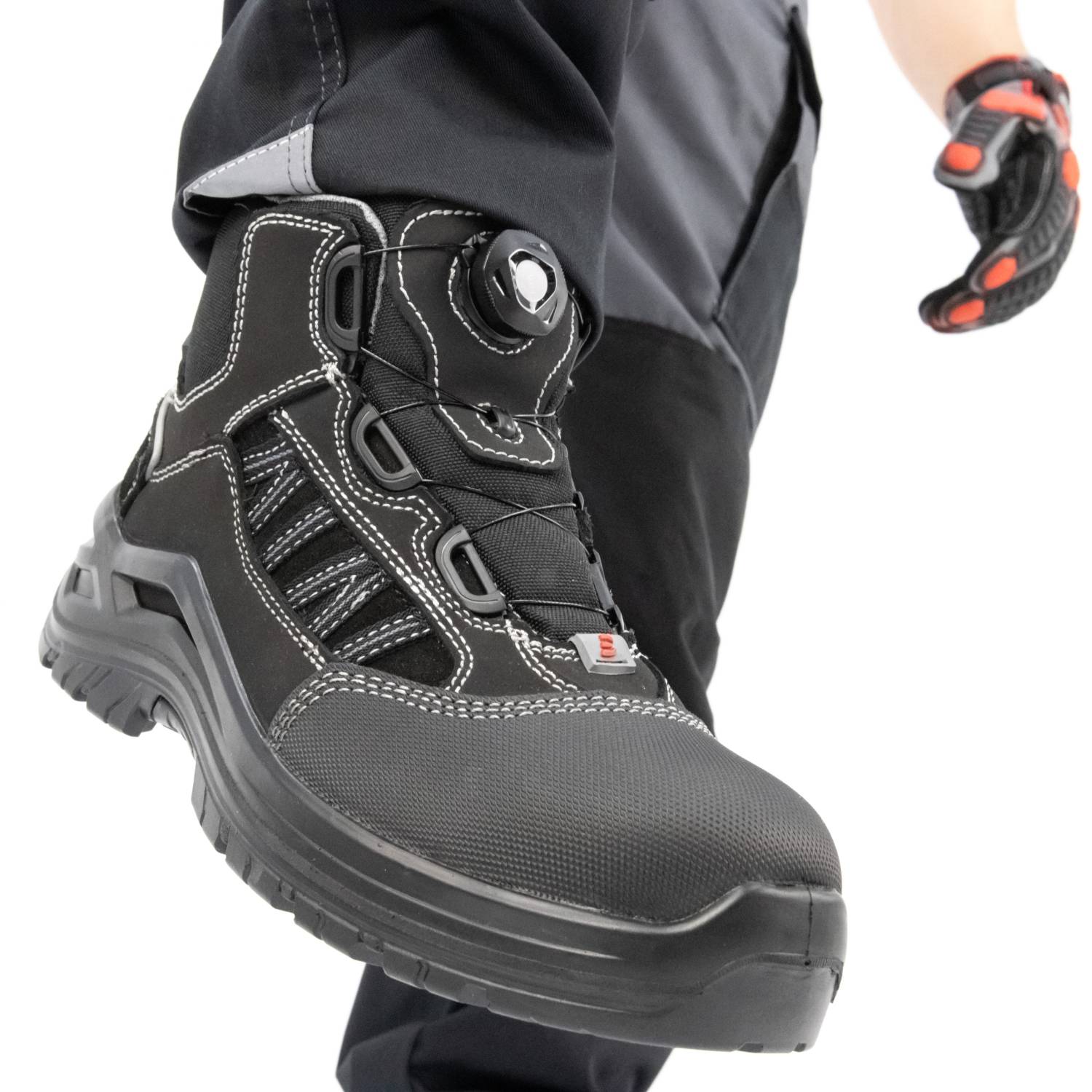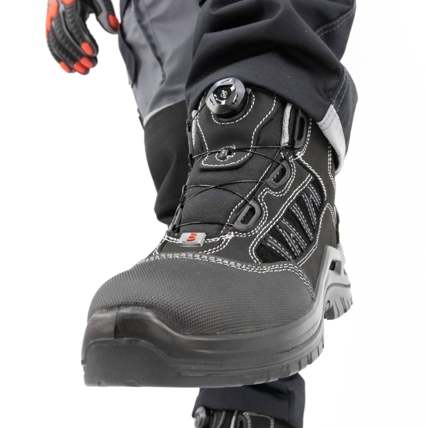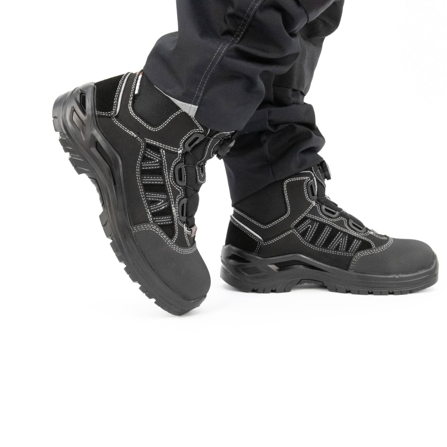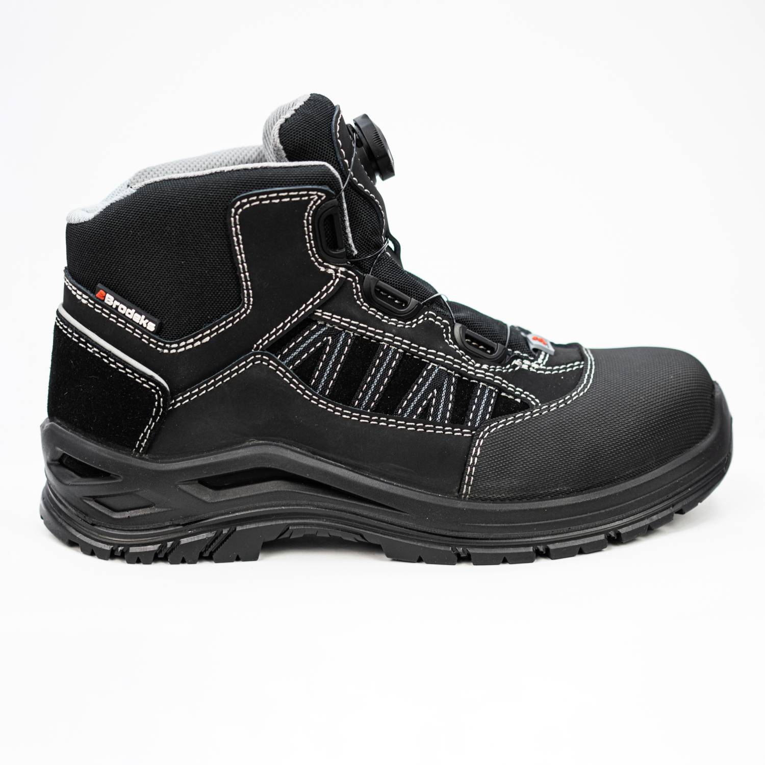 Ботинки летние мужские Brodeks Icon BRS103, черный - легкая, удобная и привлекательная защитная обувь с прекрасными водоотталкивающими свойствами и высокой степенью защиты. Верх обуви выполнен из комбинации натуральной кожи, защищающей от влаги, и легкого дышащего текстиля. Это позволяет обеспечить комфорт и высокую степень защиты при небольшом весе обуви. Отличительной особенностью ботинок является система быстрой шнуровки FitGo. Основные области применения: подходит для уличных работ в летний и демисезонный период, а также для круглогодичных работ в помещении. Рекомендуется для таких сфер, как строительство, монтажные работы, обслуживание техники и оборудования, отделочные работы.