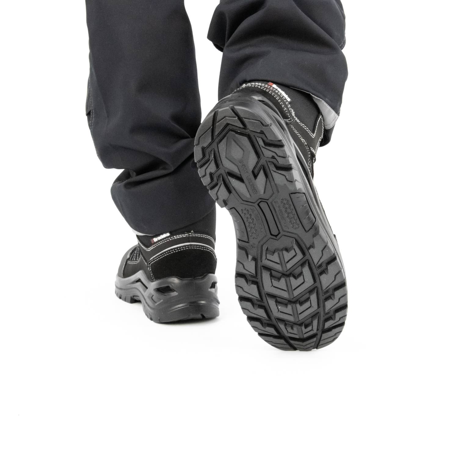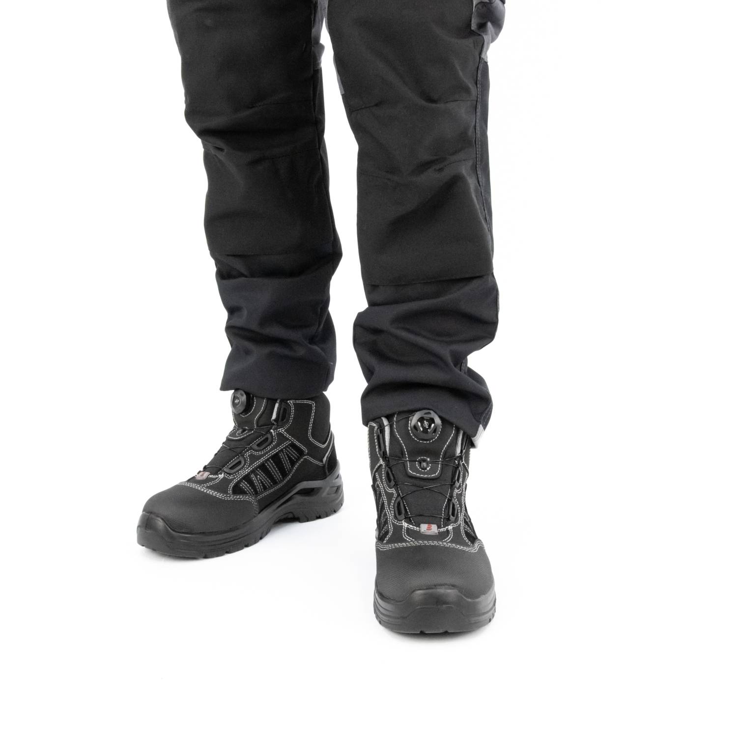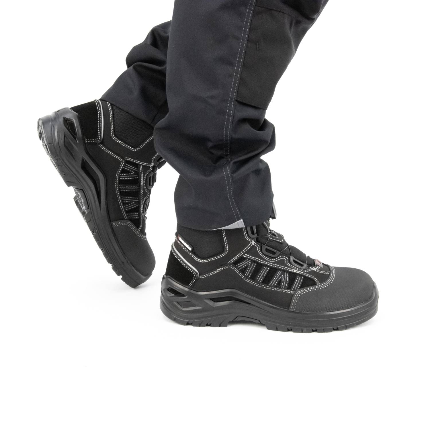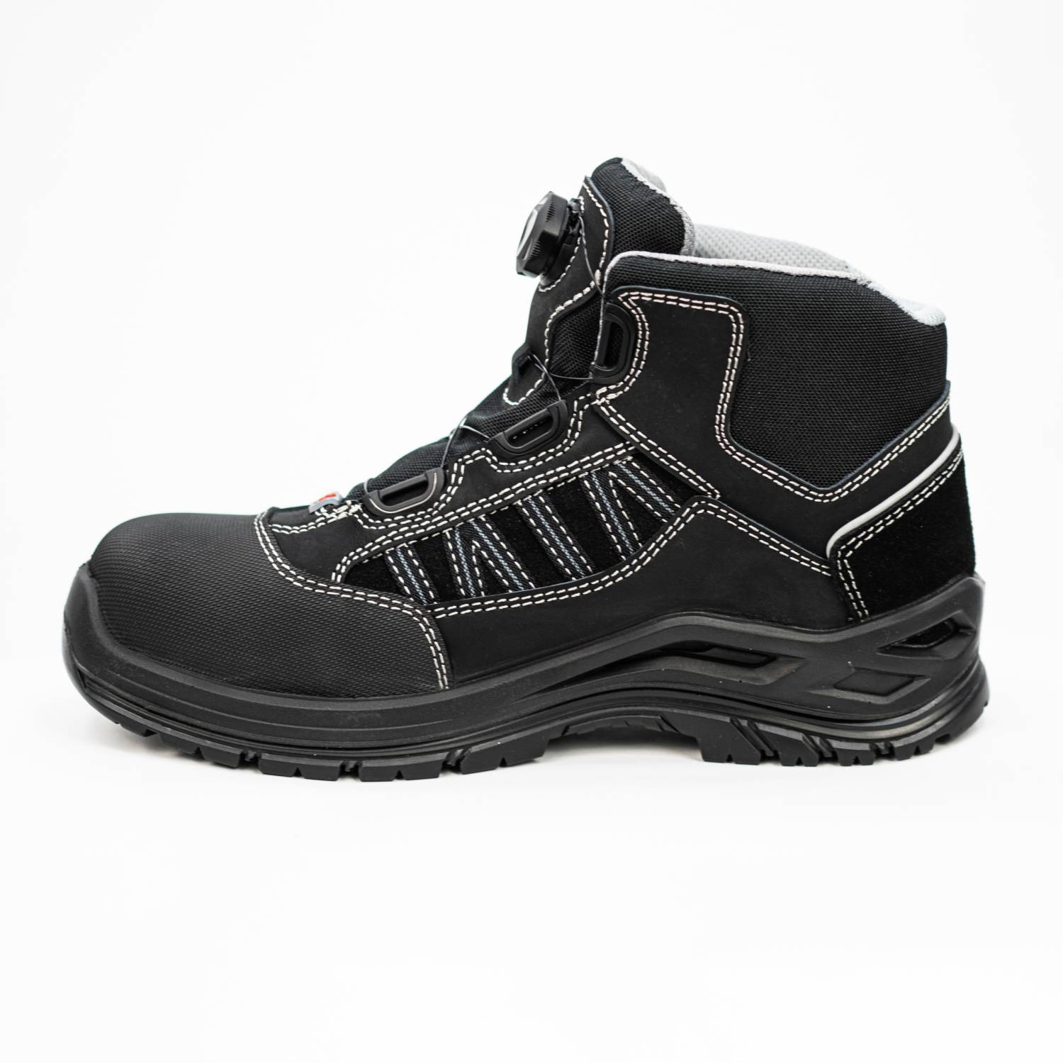 Ботинки летние мужские Brodeks Icon BRS103, черный - легкая, удобная и привлекательная защитная обувь с прекрасными водоотталкивающими свойствами и высокой степенью защиты. Верх обуви выполнен из комбинации натуральной кожи, защищающей от влаги, и легкого дышащего текстиля. Это позволяет обеспечить комфорт и высокую степень защиты при небольшом весе обуви. Отличительной особенностью ботинок является система быстрой шнуровки FitGo. Основные области применения: подходит для уличных работ в летний и демисезонный период, а также для круглогодичных работ в помещении. Рекомендуется для таких сфер, как строительство, монтажные работы, обслуживание техники и оборудования, отделочные работы.
