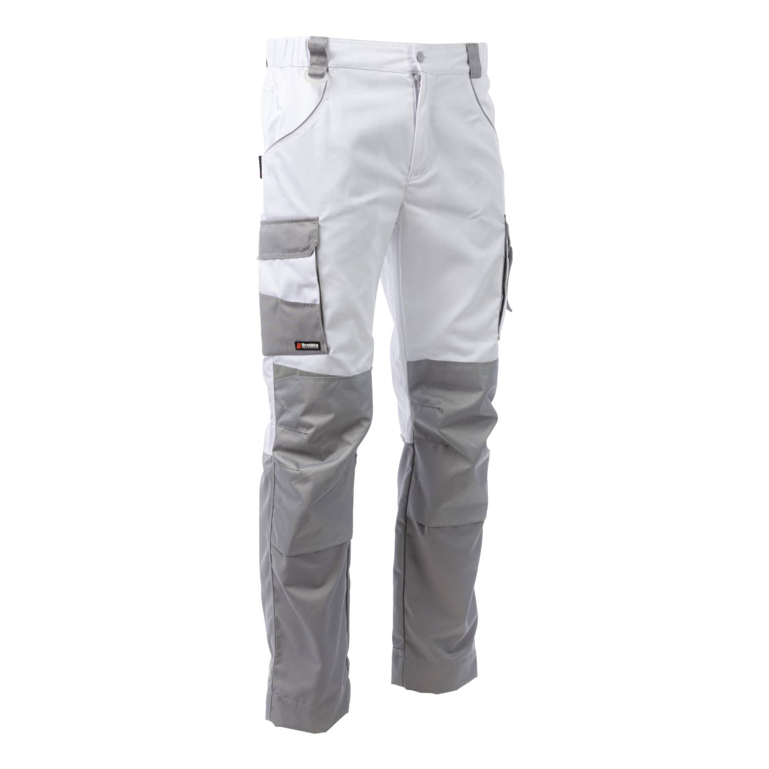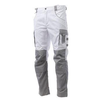 Брюки мужские летние Brodeks KS 302, белый/серый – практичные брюки для работы в помещении или на улице летом. Хорошо защищают от общепроизводственных загрязнений. Брюки белого цвета с серыми вставками идеально подойдут для выполнения малярных работ, и особенно для работы в условиях сильной жары и яркого солнца.