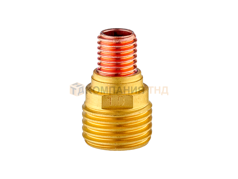 Держатель цанги (г.л.) (TS 9—20—24—25) предназначен для фиксации и поджатия цанги, а также для установки сопел и подачи защитного газа. Этот элемент устанавливается в головке горелок и используется для создания ламинарного потока защитного газа на горелках различных моделей. Держатель цанги изготовлен из меди и латуни, что обеспечивает его долговечность и надежность в эксплуатации.