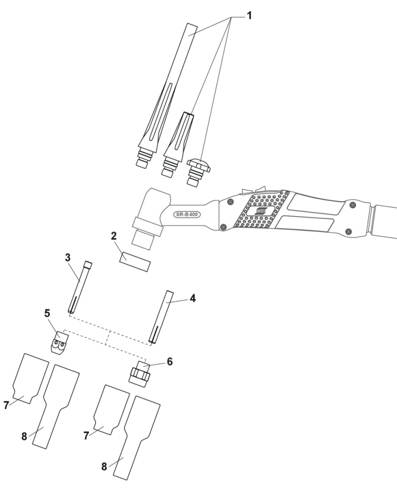Позиции, выделенные жирным шрифтом, входят в стандартный комплект поставки горелок ESAB SR-B 400