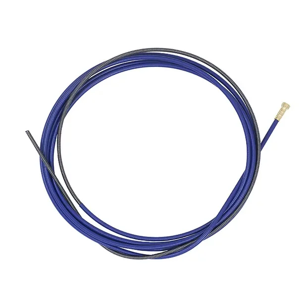 Канал направляющий (0,6–0,8) 3,5 м синий необходим в сварке типов MIG\MAG для подачи сварочной проволоки к соплу сварного пистолета. Подача происходит непосредственно от инвертора или от выносного элемента, подающего проволоку. Фиксация концов канала осуществляется в горелке и в инверторе.
