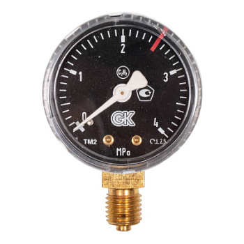 Манометр Газовый 0,6/1 МПа, 50 мм, М12х1,5 KRASS. Манометр предназначен для измерения избыточного давления жидких и газообразных неагрессивных и некристаллизующихся сред. Манометр является неотъемлемой частью редуктора, вкручивается в основание с резьбой М12х1,5 с помощью ключа на 14. Штуцер имеет радиальное расположение и выполнен из латуни. Предназначен для измерения давления газа при температуре окружающей среды от -20 С до +60 С. Точность 2.5 достигается за счёт применения медной трубки Бурдона – уникального измерительного элемента. Стальной корпуса манометра диаметром 50 мм защищён техническим (органическим) стеклом, циферблат выполнен из алюминия. Манометр поверен.