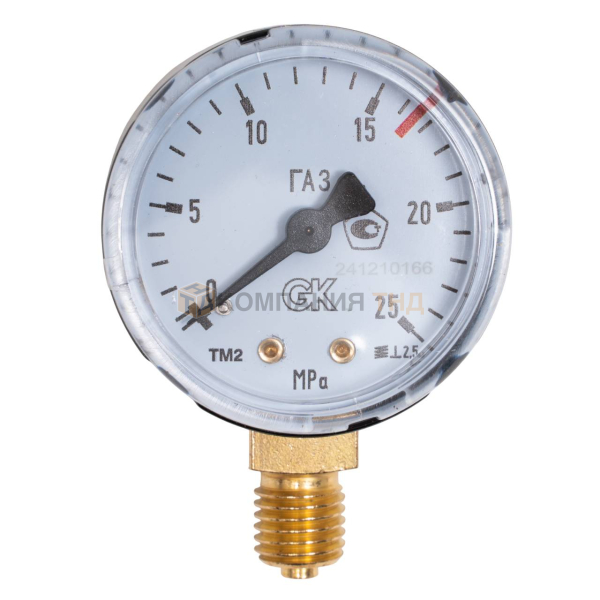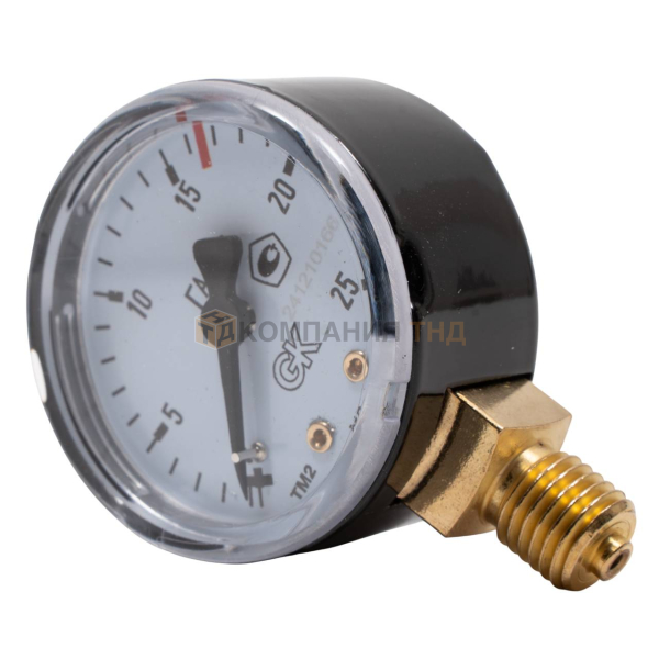 Манометр Газовый 16,5/25,0 МПа, 50 мм, М12х1,5 KRASS. Манометр предназначен для измерения избыточного давления жидких и газообразных неагрессивных и некристаллизующихся сред. Манометр является неотъемлемой частью редуктора, вкручивается в основание с резьбой М12х1,5 с помощью ключа на 14. Штуцер имеет радиальное расположение и выполнен из латуни. Предназначен для измерения давления газа при температуре окружающей среды от -20 С до +60 С. Точность 2.5 достигается за счёт применения медной трубки Бурдона – уникального измерительного элемента. Стальной корпуса манометра диаметром 50 мм защищён техническим (органическим) стеклом, циферблат выполнен из алюминия. Манометр поверен.