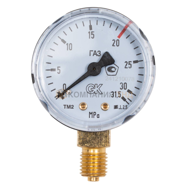 Манометр Газовый 20/31,5 МПа, 50 мм, М12х1,5 KRASS. Манометр предназначен для измерения избыточного давления жидких и газообразных неагрессивных и некристаллизующихся сред. Манометр является неотъемлемой частью редуктора, вкручивается в основание с резьбой М12х1,5 с помощью ключа на 14. Штуцер имеет радиальное расположение и выполнен из латуни. Предназначен для измерения давления газа при температуре окружающей среды от −20 °C до +60 °C. Точность 2.5 достигается за счёт применения медной трубки Бурдона – уникального измерительного элемента. Стальной корпус манометра диаметром 50 мм защищён техническим (органическим) стеклом, циферблат выполнен из алюминия. Манометр поверен в соответствии с сертификатами об утверждении типа средств измерений №81321-21 до 18.03.2026 г. и №95581-25 до 26.05.2030 г.
