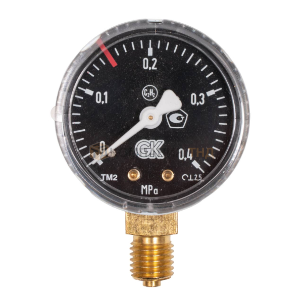 Манометр Ацетиленовый 0,4 МПа, диаметр 50 мм, резьба М12, Поверенный. Артикул 2190101PV.