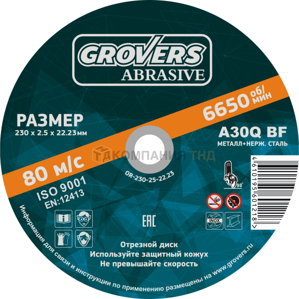 Отрезные круги GROVERS ABRASIVE могут быть применены для резки обычного черного металла и металла из нержавеющей стали. Толщина круга варьируется от 2мм до 3мм, диаметр 230мм.