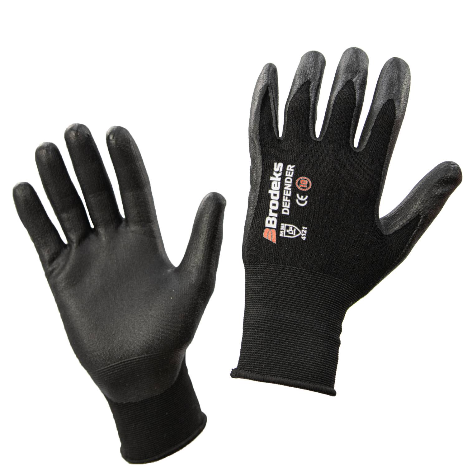 Рабочие перчатки с нитриловым покрытием Brodeks Defender G-21 - тонкие и очень эластичные перчатки, хорошо облегающие руки и обеспечивающие свободу движений ладони. Перчатки выполнены из пряжи плотностью 15G (гейч), что обеспечивает плотное прилегание по руке. Облив ладони нитрильной пеной технологии AQUTEK идеально подходит для захвата мелких предметов, для сухого и мокрого хвата гладких поверхностей, отлично дышит и не стесняет движений. Рекомендуется для следующих сфер деятельности: строительство, энергетика, малярные работы, автомобильная промышленность и ремонт, прокладывание слаботочных сетей, обслуживание и ремонт станков, наладка производственных линий.