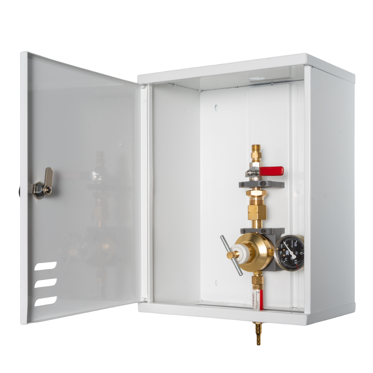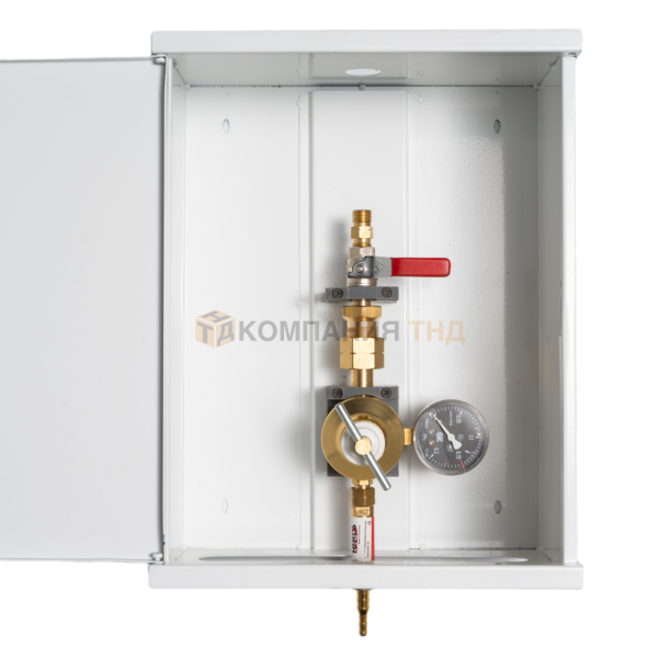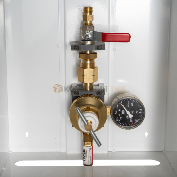 Пост состоит из металлического шкафа с замком, окрашенного в цвет, соответствующий газу и наклейками по ГОСТ 12.2.008, шарового крана, сетевого редуктора, затвора предохранительного (опционально) и соединительной арматуры.