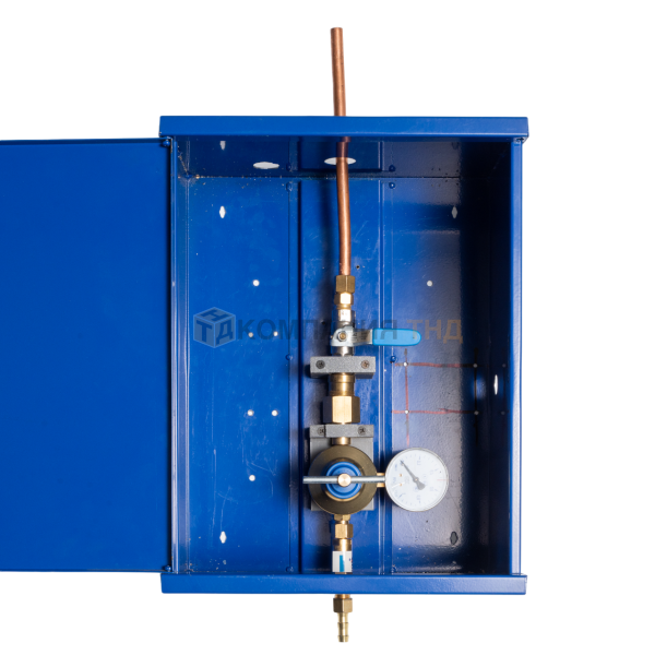 Пост состоит из металлического шкафа с замком, окрашенного в цвет, соответствующий газу и наклейками по ГОСТ 12.2.008, шарового крана, сетевого редуктора, затвора предохранительного (опционально) и соединительной арматуры.