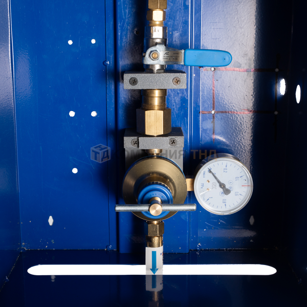Пост состоит из металлического шкафа с замком, окрашенного в цвет, соответствующий газу и наклейками по ГОСТ 12.2.008, шарового крана, сетевого редуктора, затвора предохранительного (опционально) и соединительной арматуры.