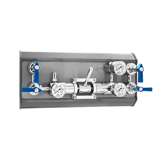 Рампа полуавтоматическая двухплечевая VSP-8AE — одноступенчатая модульная рампа на базе регуляторов VSR-1E/VSR-6E, обеспечивающая автоматическое переключение между двумя плечами и стабильное выходное давление до 100 бар при входном давлении до 300 бар. Корпус из хромированной латуни или нержавеющей стали 316L, мембранные запорные клапаны Elgiloy, высокогерметичный регулятор с седлом PCTFE и мембраной Hastelloy C276 и фильтр из 316L делают VSP-8AE компактным и надёжным решением для тестовых стендов, систем калибровки и лабораторного контроля давления в высокочистых газовых линиях.