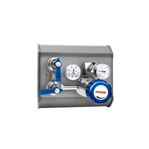 Рампа ручная одноплечевая VSP-1 представляет собой одноступенчатую модульную систему на базе регулятора VSR-2E для питания потребителей от одной группы баллонов с давлением до 300 бар и регулированием выходного давления до 50 бар. Корпус из хромированной латуни или нержавеющей стали 316L, мембранные запорные клапаны Elgiloy, регулятор с седлом PCTFE и мембраной Hastelloy C276 и фильтр 316L обеспечивают высокую чистоту, герметичность и надёжность в калибровочных, лабораторных и испытательных газовых установках.