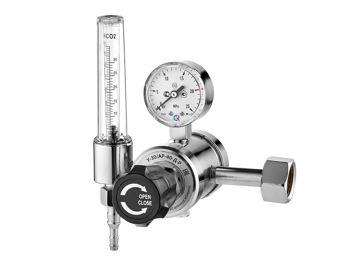 Регулятор У-3О/АР-40-Д-Р имеет встроенный расходомер (ротаметр), который обеспечивает постоянное давление газа и стабильный расход в течение всего сварочного процесса. Регулятор предназначен для работы с аргоном, углекислым газом и их смесью.