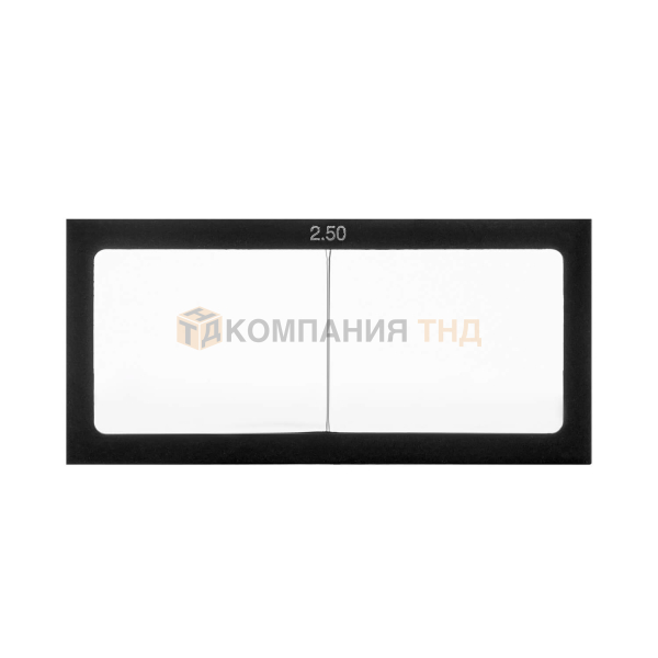 Стеклянная диоптрическая линза 250 для корректировки зрения, с увеличением +2,5 диоптрия. Линза крепится к светофильтру с внутренней стороны сварочной маски, благодаря этому сварщику можно производить работы без использования очков. Толщина оптического стекла 4 мм, размер пластины 108х50 мм.