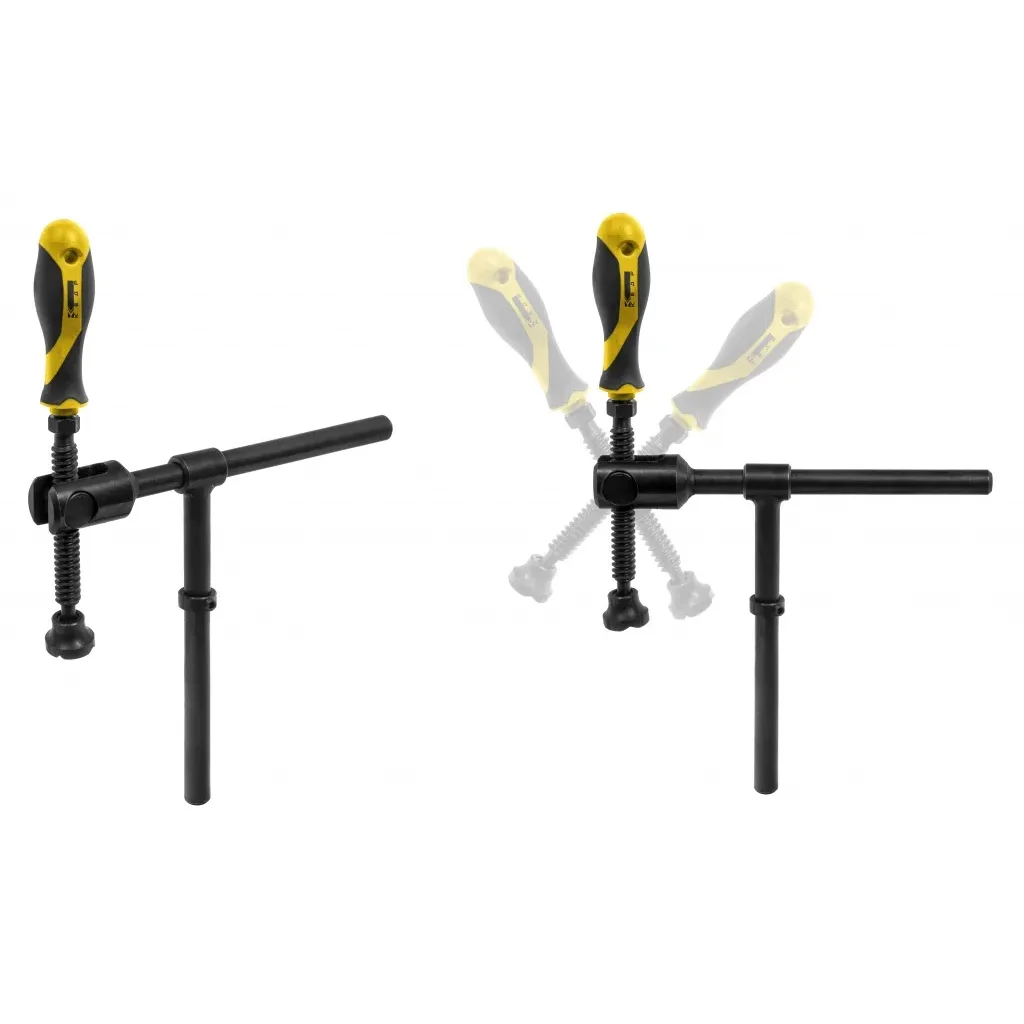 Струбцина универсальная КЕДР (для Д-16 EXPERT) предназначена для точной и надежной фиксации закрепляемых деталей, для фиксации в труднодоступных местах может использоваться только верхняя часть струбцины. Струбцина регулируется как по горизонтали, так и по вертикали. Рабочий винт имеет шарнирный узел крепления, что дает возможность менять угол фиксации до 45°, такая конструкция объединяет преимущества стандартных струбцин 90 град. и струбцин с углом 45 град. Рукоять струбцины имеет специальное прорезиненное и эргономичное покрытие. За счет применения воронения деталей струбцины гарантируется длительный срок службы.