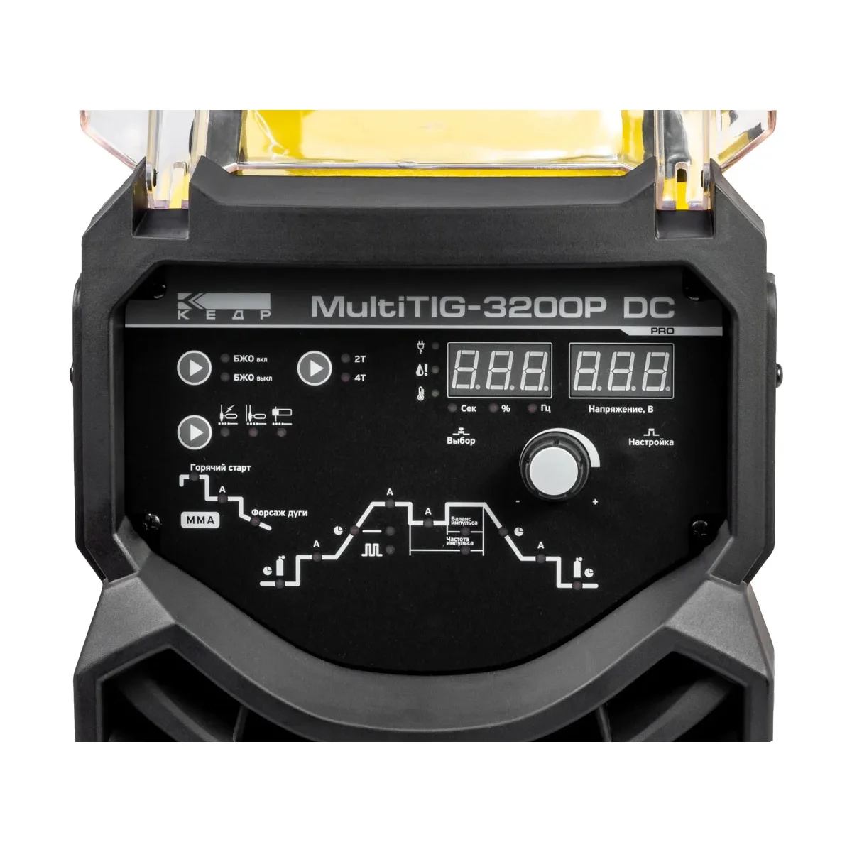 Сварочный аппарат КЕДР MultiTIG-3200P DC (380В, 5-320А). Артикул 8008475. Установка аргонодуговой сварки КЕДР MultiTIG-3200P DC (380В) - мультифункциональное устройство, способное решать сложнейшие производственные задачи. Расширенный режим TIG даёт сварщику возможность настройки таких параметров, как форма волны переменного тока, частота (до 999 Гц) и скважность импульса в режиме DC, баланс полярности и частота переменного тока. Полноценный ММА режим позволяет осуществлять тонкую подстройку динамических характеристик дуги регулировкой показателей HotStart и ArcForce, что обеспечивает максимально качественный процесс при сварке самых ответственных конструкций. Сварочный ток 320А, показатель ПВ 100% и высокая степень защиты электронных компонентов позволяют использовать MultiTIG-3200P DC в качестве основного промышленного инструмента в судостроительной, оборонной и космической промышленностях. Аппарат может быть укомплектован проводной и беспроводной педалью, беспроводным пультом дистанционного управления, дублирующим панель управления, и проводным пультом дистанционного управления для ММА-режима.