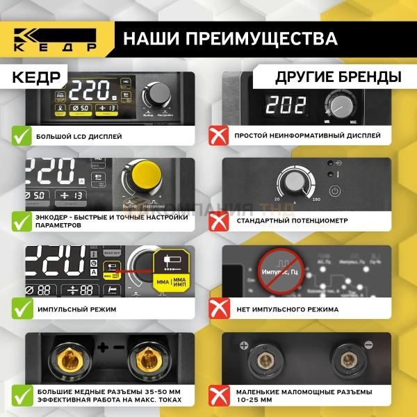 Технические характеристики аппарата инверторного КЕДР UltraARC-250S Pulse Digital (230В, 20-220А)