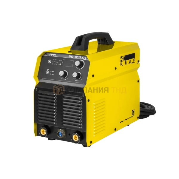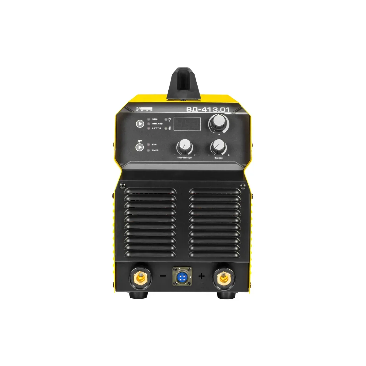 Сварочный аппарат КЕДР ВД-413.01 PRO. Артикул 8014765. Сварочный инвертор КЕДР ВД-413.01 PRO предназначен для ручной дуговой сварки покрытым электродом. Данный аппарат обладает высокой мощностью, за счет чего возможно выполнение различных задач, в том числе и воздушно-дуговой строжки. Предусмотрено подключение пульта ДУ для удаленной регулировки силы тока. Наличие функции Горячий старт обеспечивает легкий поджиг дуги, за счет чего повышается качество сварного соединения. Обратите внимание, что свидетельство НАКС не входит в комплект и является опцией для данного оборудования.