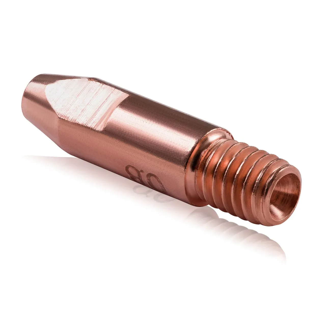 E-Cu - наконечник изготовлен из сплава меди. Используется для сварки стальными, нержавеющими и порошковыми проволоками.