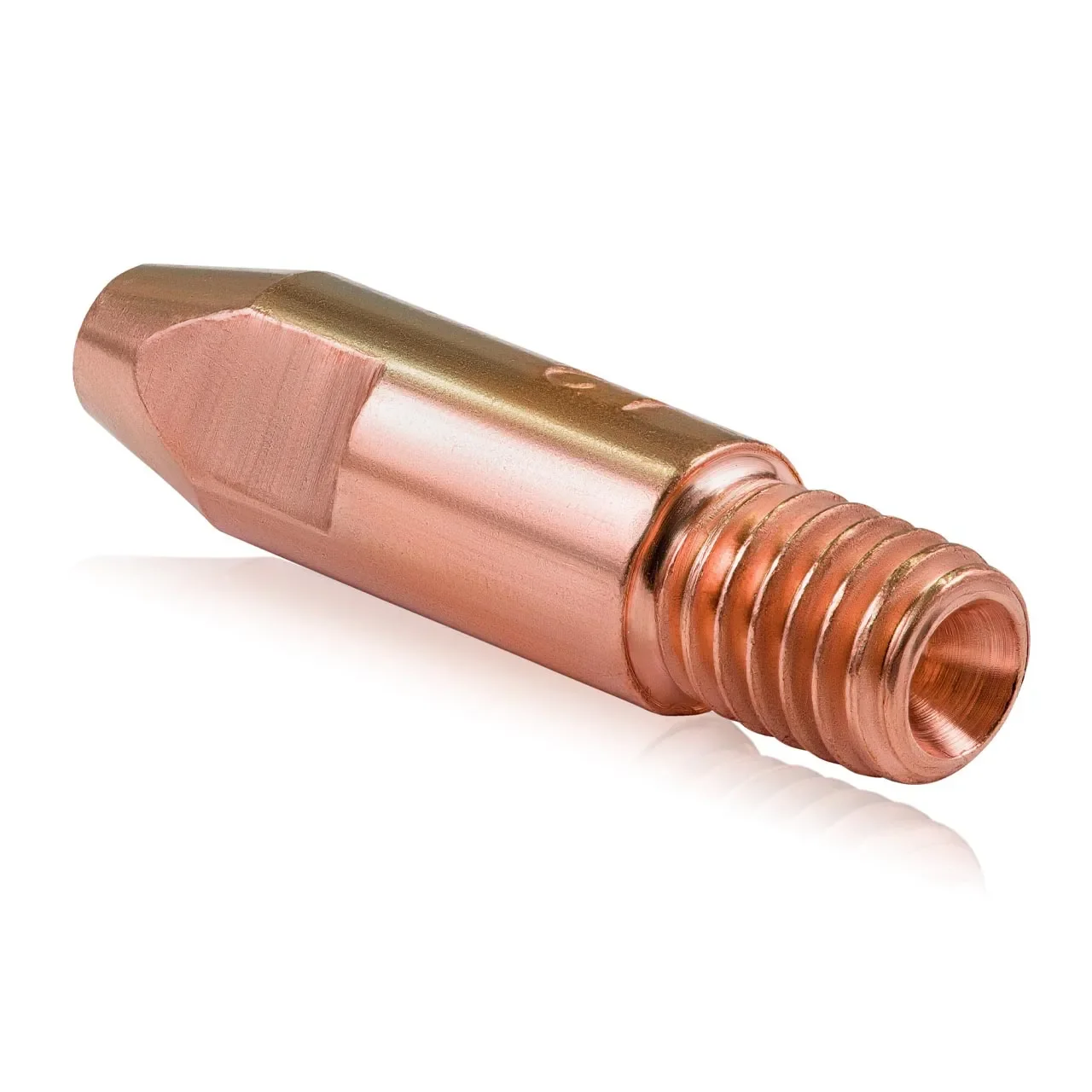 E-Cu - наконечник изготовлен из сплава меди. Используется для сварки стальными, нержавеющими и порошковыми проволоками.