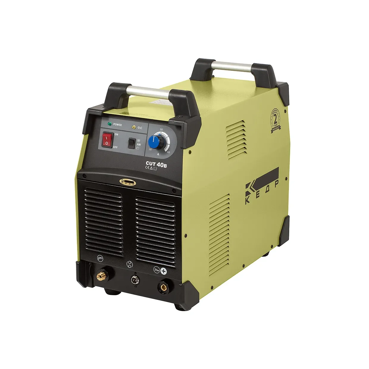 Установка воздушно-плазменная КЕДР CUT-40B (встроенный компрессор, 220В, 20-40А, 12 мм). Артикул 8001351. Компактный и легкий аппарат воздушно-плазменной резки КЕДР CUT-40B обеспечивает возможность резки любых токопроводящих материалов толщиной до 12 мм. Данная модель оптимально подойдет как для использования в частных мастерских, так и для выполнения ремонтных работ коммунальными службами и эксплуатации на небольших предприятиях. В корпус КЕДР CUT-40B встроен собственный компрессор. Регулировка давления подачи воздуха производится автоматически в зависимости от установленного оператором тока резки, что существенно облегчает настройку и процесс эксплуатации. Устройство можно также подключить ко внешнему источнику сжатого воздуха. В комплектацию аппарата уже включён надежный плазмотрон.