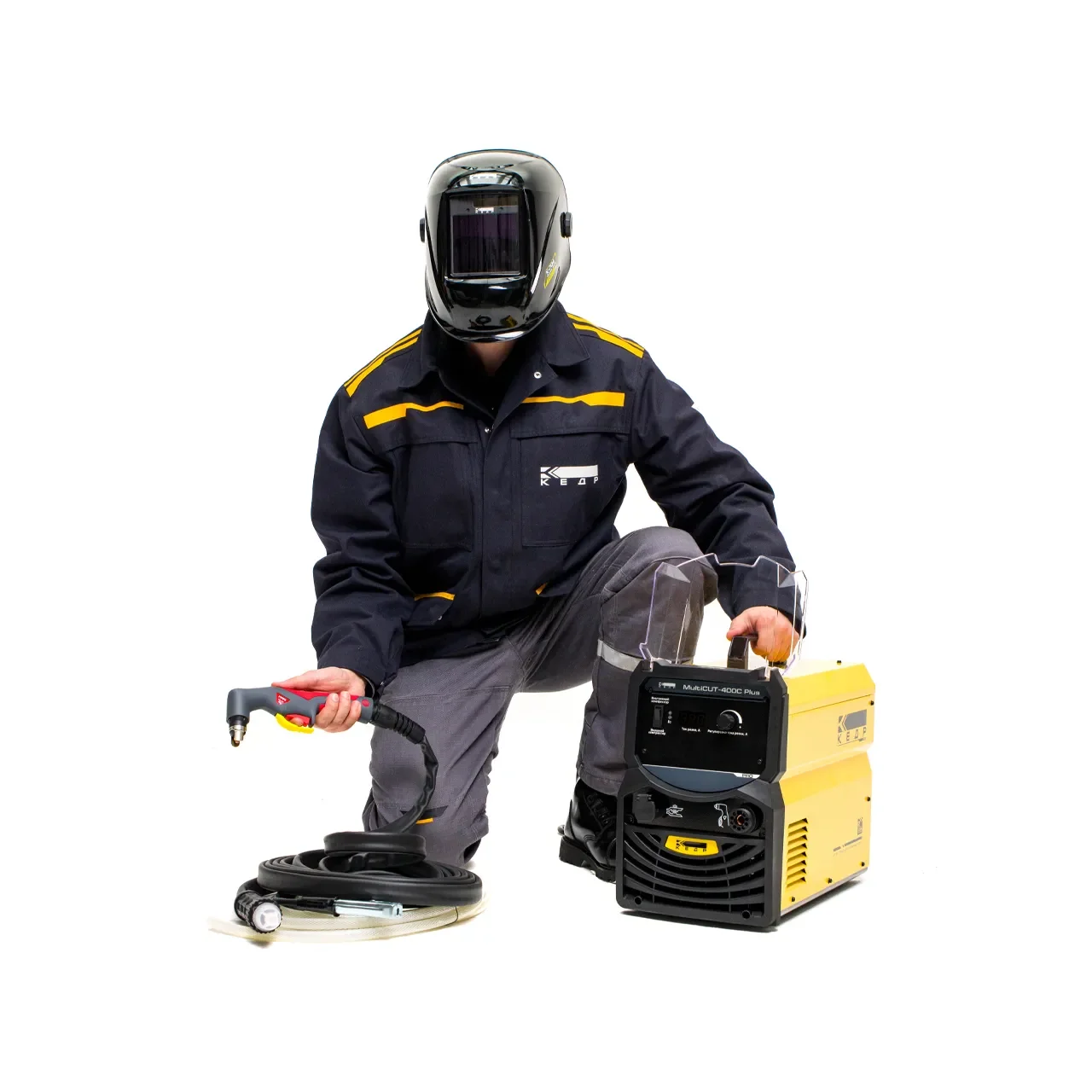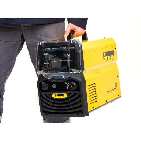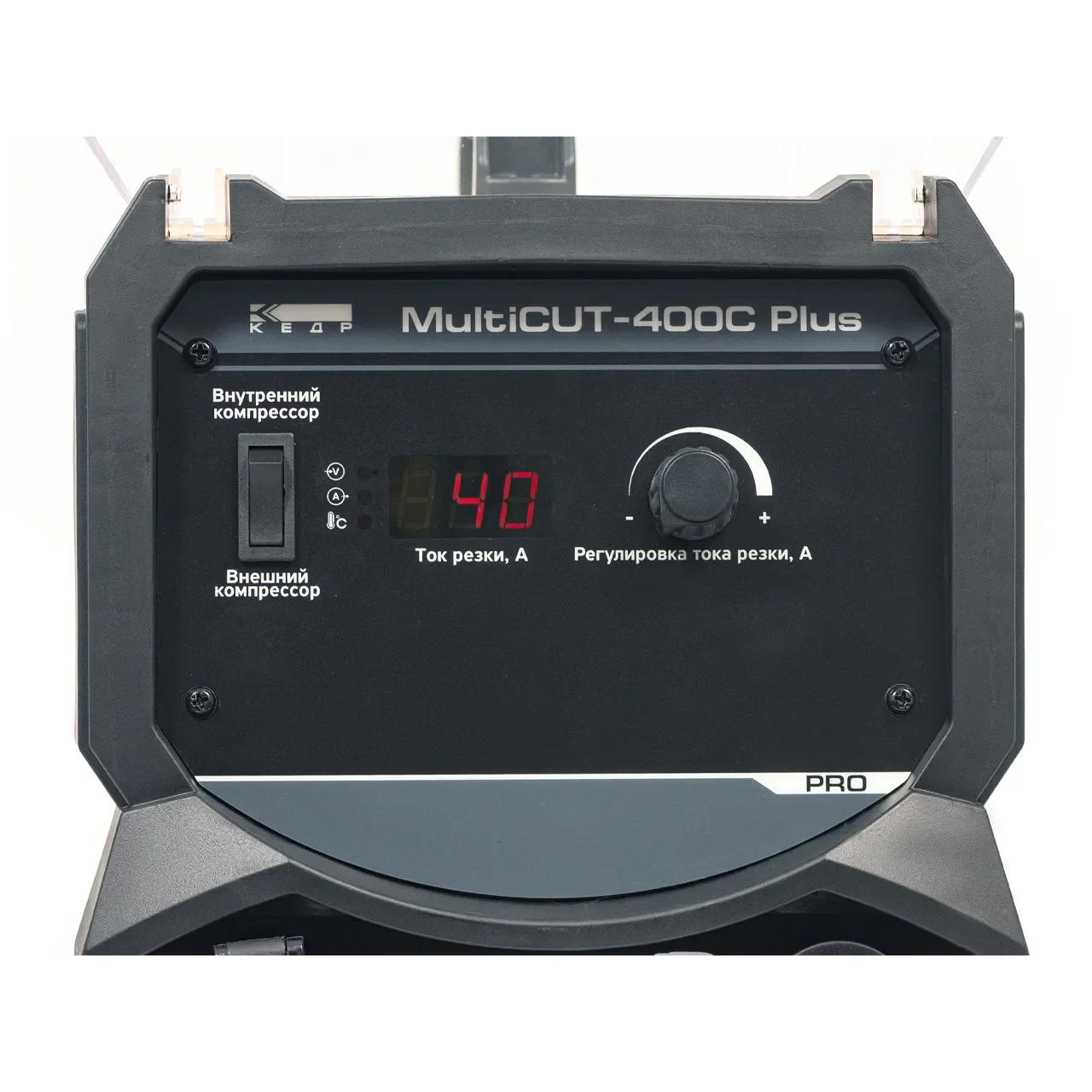 Установка воздушно-плазменная КЕДР MultiCUT-400C Plus (220В, 15-40А, 12 мм). Артикул 8021981. КЕДР MultiCUT-400C PLUS – это аппарат воздушно-плазменной резки нового поколения, позволяющий оперативно выполнять резку металла, в том числе демонтаж конструкций выполненных из чугуна, нержавеющей стали, алюминия и его сплавов, меди и других цветных и чёрных металлов. Благодаря малым габаритам и массе, а также встроенному компрессору аппарат для воздушно-плазменной резки КЕДР MultiCUT-400C PLUS обеспечивает высокую мобильность и позволяет выполнить резку токопроводящих материалов толщиной до 12 мм с высочайшей производительностью и точностью, при этом специалист не привязан к стационарным компрессорным установкам - для работы достаточно бытовой электросети (220В).