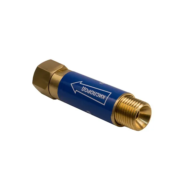 Затвор предохранительный КЕДР ЗП-3К (кислород), на вход резака /горелки, М16х1,5 — предназначен для предотвращения прохождения обратного удара, возникающего при газопламенной обработке металлов, в защищаемое оборудование.