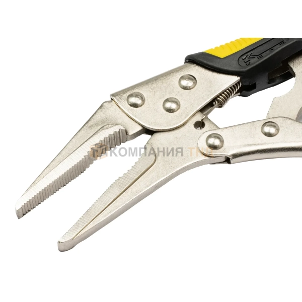 Зажим ручной КЕДР 9J PRO предназначен для быстрой фиксации и удержания заготовок при сборке деталей на прихватки и выполнении механических работ. Применяется в слесарной обработке. Ручной зажим сделан из стали и имеет хромированное покрытие. Надежная фиксация деталей обеспечивается благодаря прочной конструкции системы фиксации и губкам с насечкой, которые выполнены из качественной углеродистой стали. Рабочие поверхности губок закалены и имеют твердость (HRC) 43°±2. Тип зажима J - имеет продолговатые губки и применяется для зажимов в труднодоступных местах, когда место фиксации расположено отдаленно от края. Наличие фиксатора позволяет регулировать расстояние между губками. С помощью рычага зажим легко разжимается. На рукоятках имеются специальные полимерные накладки, которые препятствуют скольжению руки и улучшаю хват.